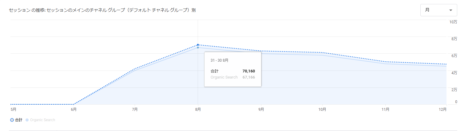 スタート後1ヶ月で42,060セッション、翌月は約66%増の70,160セッションに。